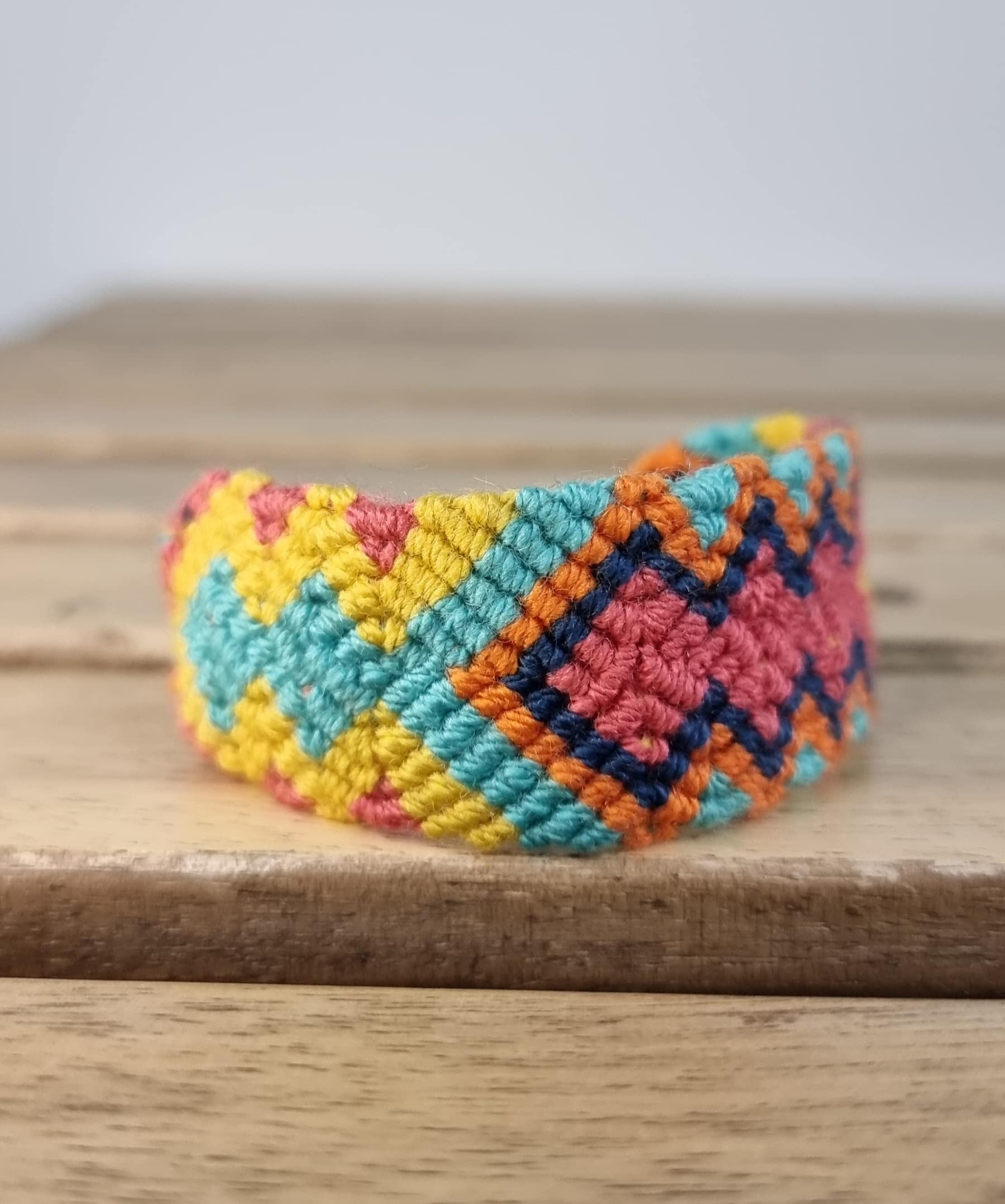 Fatto a mano da donne della tribù Wayuu in Colombia , questo braccialetto è l’accessorio perfetto per dare colore ai tuoi outfit tutto l’anno. Se ne indossi molti contemporaneamente, avrai tutti gli occhi su di te.